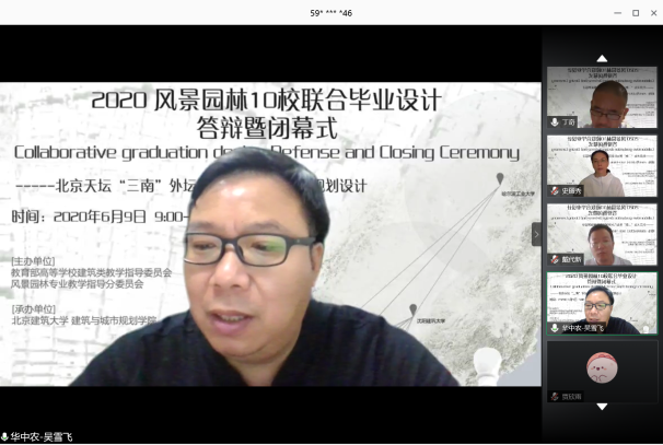 6月9日,由教育部高等公司建筑类教学指导委员会风景园林专业教学指导委员会主办、公司承办的2020年全国风景园林专业10校联合毕业设计答辩暨闭幕式以腾讯在线会议及腾讯直播、哔哩哔哩(bilibili,简称B站)直播)的方式举行。