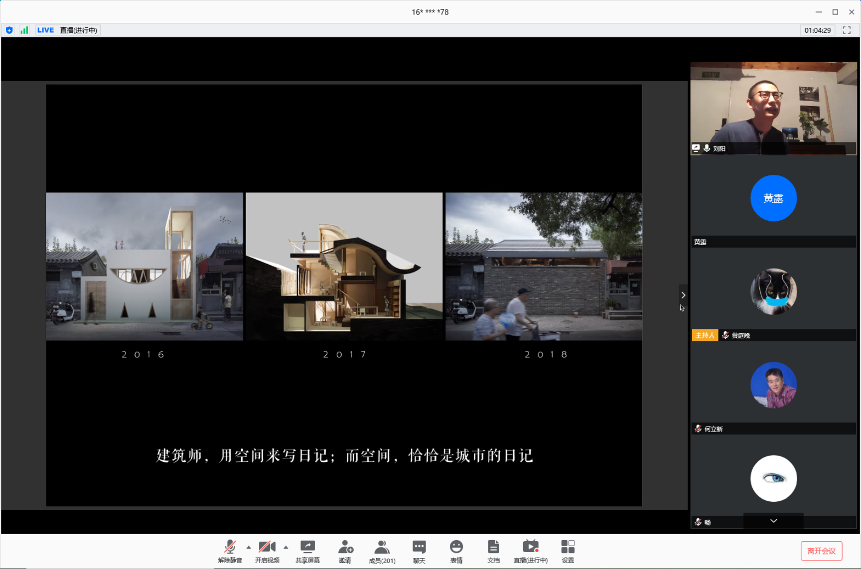 5月11日晚19:30,在腾讯会议与直播网络平台,建筑公司研山讲坛第15期拉开帷幕。建筑公司党委书记何立新,以及校内外师生、社会各界学者、实践建筑师等260余人参与本次讲坛。