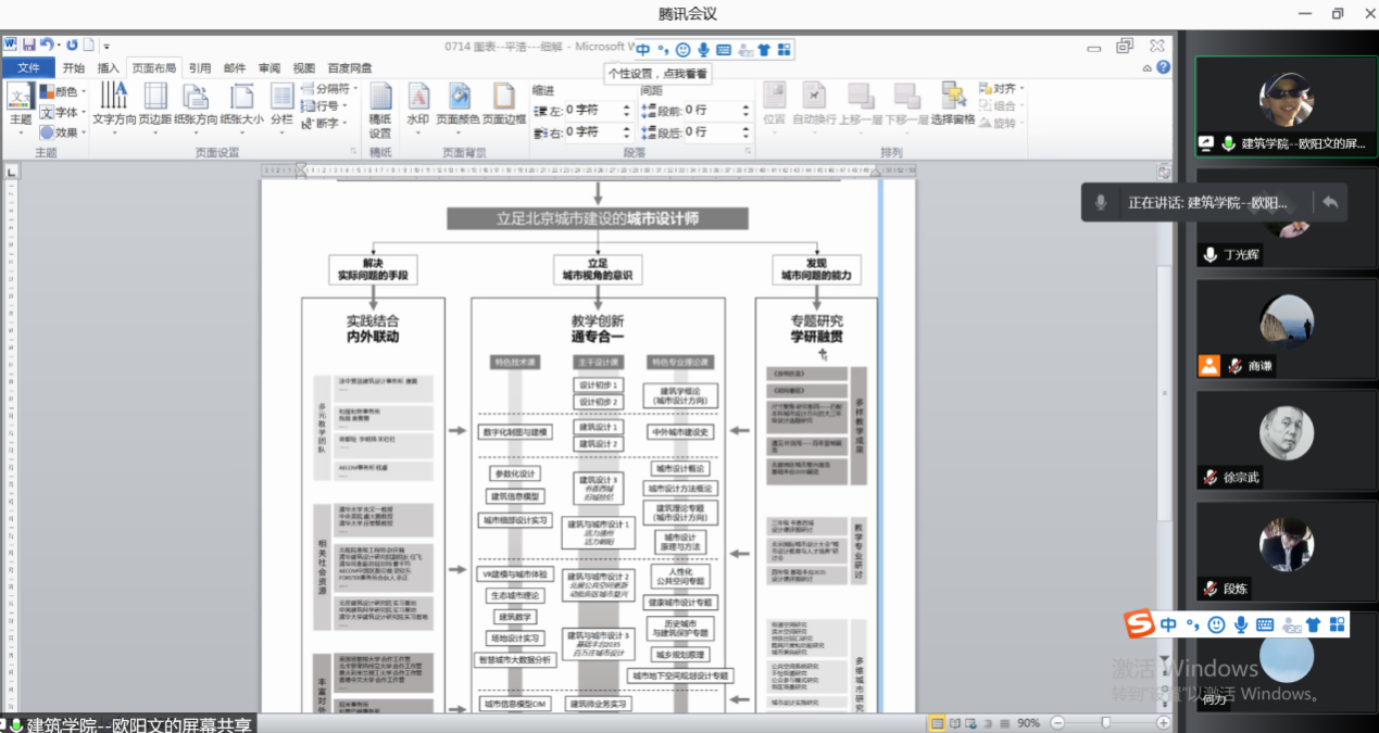 建筑公司常务副经理金秋野教授率先发言,就公司建筑学专业面临的行业变化、招生变动、教学改革等若干方面的迫切需求做了分析,为专任教师指明下一步工作方向;副经理李春青教授随后就建筑系教学安排和教学改革做了介绍,勉励任课教师认真制定教学教案和计划,统筹教学成果,并通过多渠道宣传建筑系教学改革成果;建筑学专业负责人欧阳文教授就城市设计教学作了分享,强调通专合一、内外联动、学研融贯共赢,并结合与AECOM公司钱睿老师合带毕业设计的教学经历,介绍了校企联合教学方式及下阶段城市设计教学设想。