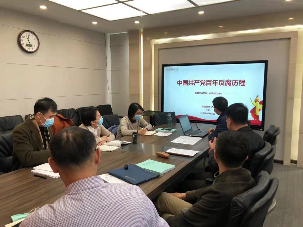 校纪委副书记牛磊以《中国共产党百年反腐历程》为题对与会人员进行培训。他从中国共产党成立开始,详细阐述了中国共产党的百年反腐历程,从首届中央监察委员会成立,到“狱中八条”,从整风运动,到《中国共产党纪律处分条例》出台,结合高校的典型案例,让与会人员充分认识到中国共产党反腐的坚强决心和重要意义,只有坚持不懈地推进党的自我革命、提高全党斗争本领和应对风险挑战能力、永葆党的生机活力,才能团结带领全国各族人民实现中华民族伟大复兴的中国梦。