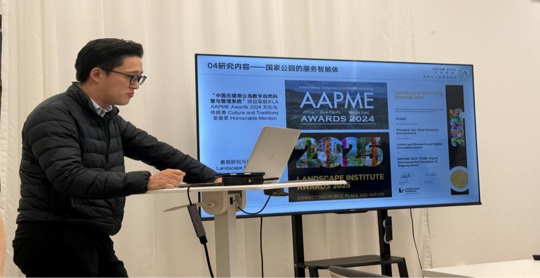 随后,学术对谈正式拉开帷幕,在张振威老师的主持下,张益章博士围绕“数智国土”这一主题,分析了关于大模型与智能体在保护地管理中的应用逻辑,通过对监测中的算法框架、模型优化、具体应用三个维度展开了深入浅出的讲解。探讨了关于国家公园服务智能体的应用,涉及自然保护地火情管理以及栖息地生态监测等方面,展示了未来人工智能应用于国家公园建设与智慧管理的潜力。