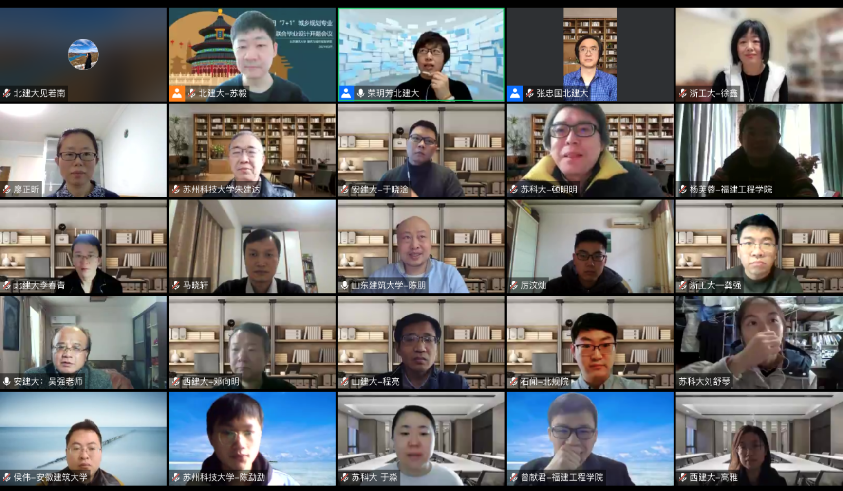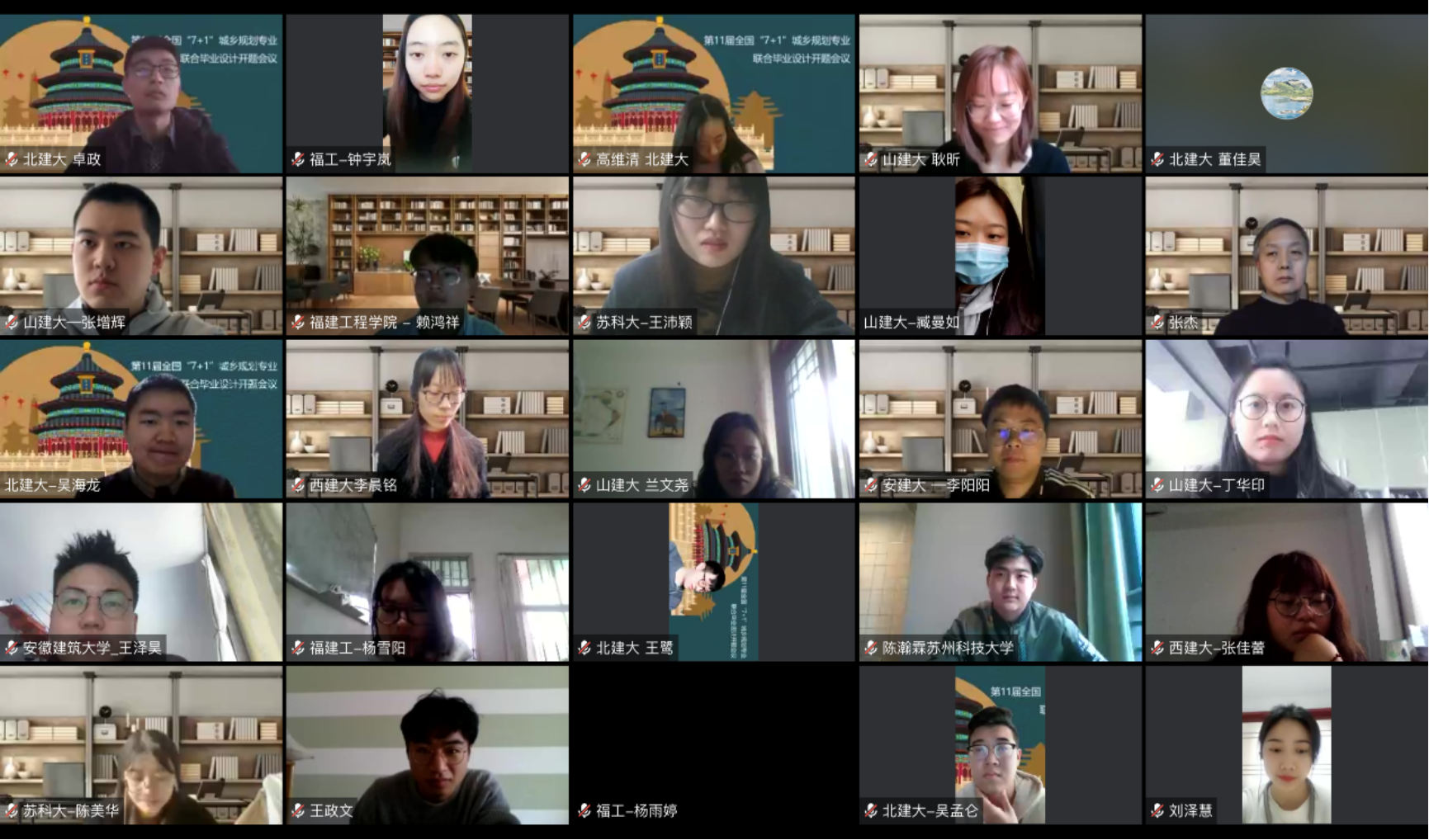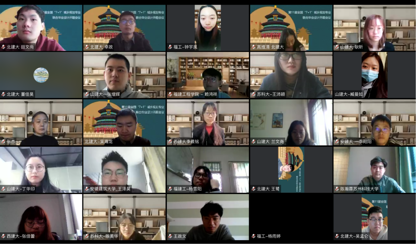 2021年3月6日,全国7+1城乡规划专业七校联合毕业设计开题活动在线上顺利举行。本次联合毕业设计主题为“活力·韧性”,由beats365官方网站、苏州科技大学、山东建筑大学、西安建筑科技大学、安徽建筑大学、浙江工业大学、福建工程公司等七校联合举办,由公司beats365官方网站承办。beats365官方网站张大玉副董事长、北京市城市规划设计研究院石晓冬经理、beats365官方网站张杰经理、教务处马晓轩副处长、beats365官方网站李春青副经理,以及各位专家、规划师、建筑师、七所高校百余名师生参加了本次开题活动,各位领导和教师分别致辞并发言,针对本次毕业设计题目基地选在了首都核心区世界文化遗产天坛的北侧街区,活动同期举办了北京老城更新学术讲座。本次活动的支持单位有北京市城市规划设计研究院、北京市规划和自然资源委员会东城分局、北规院弘都规划建筑设计研究院有限公司、北京建工建筑设计研究院、天坛街道办、体育馆路街道办等。