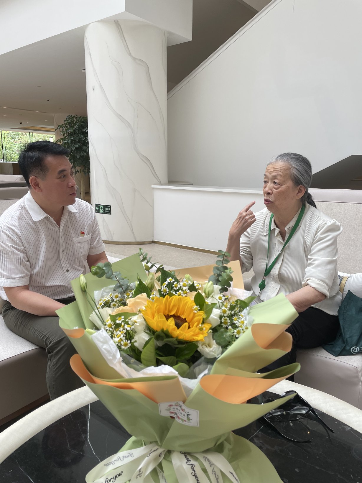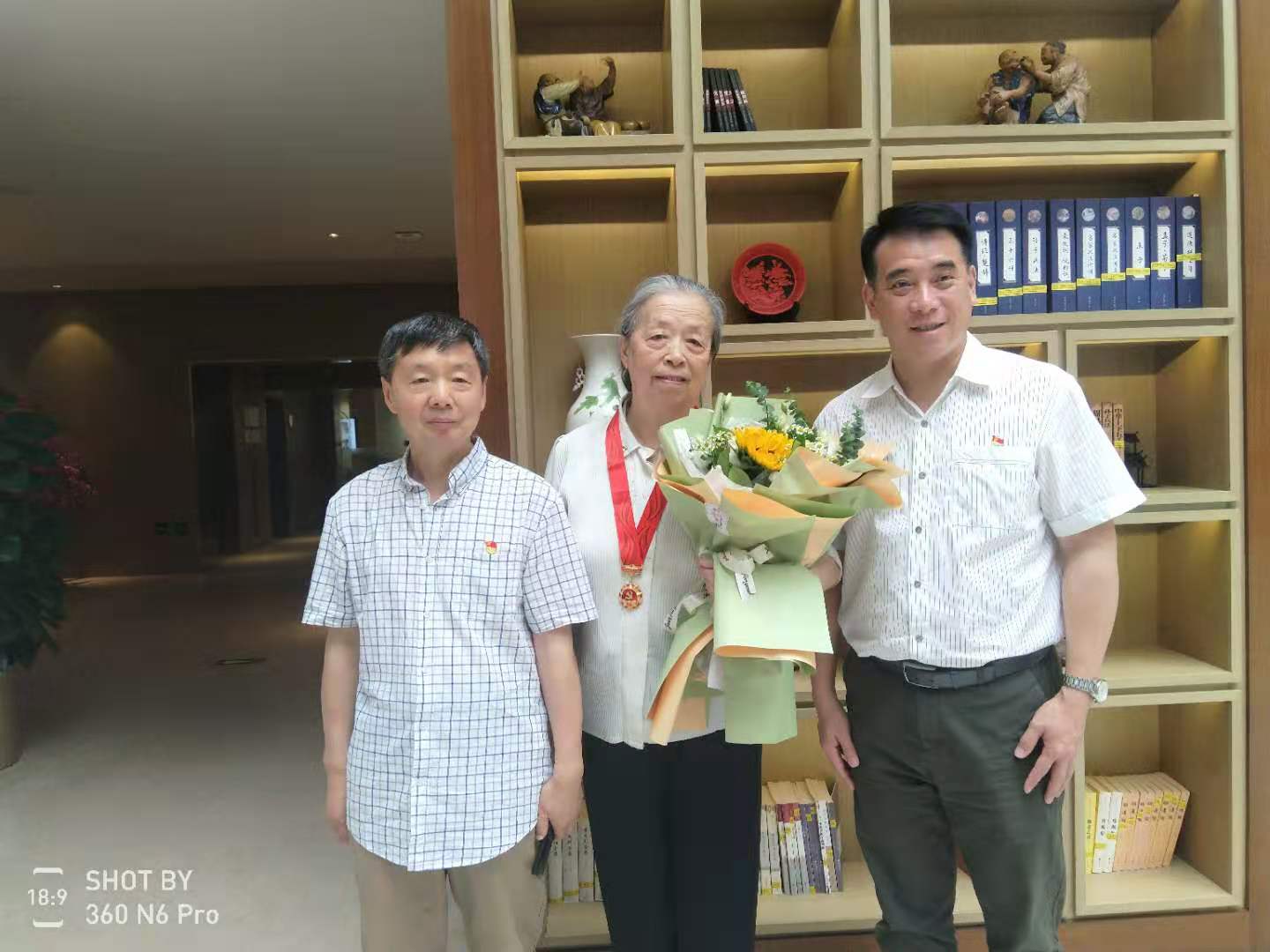 6月18日,建筑与城市规划公司党委书记何立新带队前往“首厚大家”敬老院看望“光荣在党50年”老党员朱霭敏老师并为她颁发“光荣在党50年”纪念章。建筑公司专职组织员、党政办主任、退休党支部书记随行。