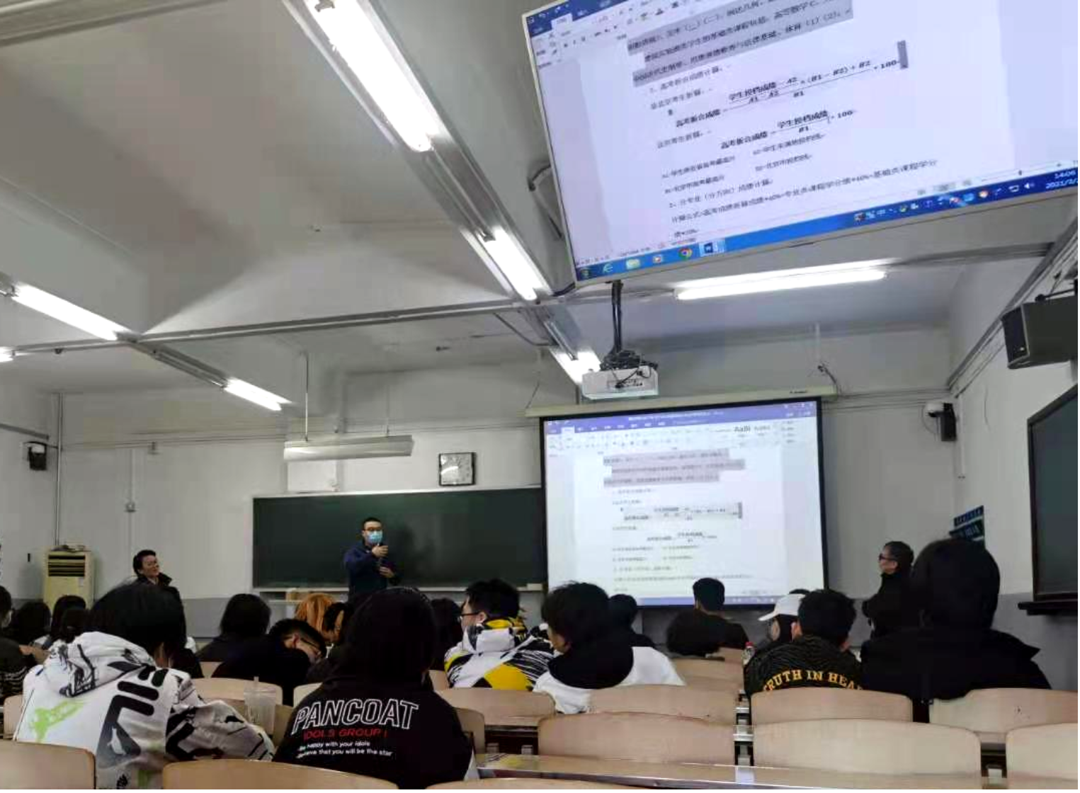 3月23日,建筑公司在教1-204室召开了2020级建筑学实验班员工分方向工作动员会和标准说明会。建筑公司副经理李春青、建筑系副系主任王韬、商谦、教师刘平浩、公司教学管理办公室主任刘志刚、教务老师王宇石和全体2020级建筑学班员工参加了会议。会上,王韬、商谦老师分别介绍了建筑学创新实验和城市设计两个方向的人才培养特点与课程设置情况,李春青副经理说明了建筑学实验班分方向的管理规定,刘平浩老师解读了管理规定中的成绩计算标准与细则。