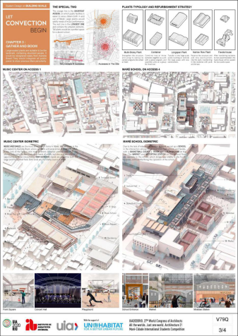 获奖作品选择地块位于巴西里约热内卢的马里——一个正在逐渐衰落的工业区。在这里,已经消失于市中心的具独特创造力和活力的活动,例如街头桑巴舞、实验性说唱音乐和民间比赛仍然繁荣。设计者意图邀请人们体验并传播马里的文化,并以此激发、促进城市繁荣地区和贫民窟间的经济和文化交流,并将其形容为“对流”。