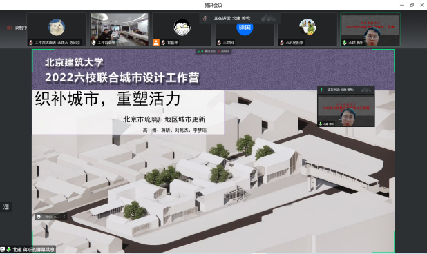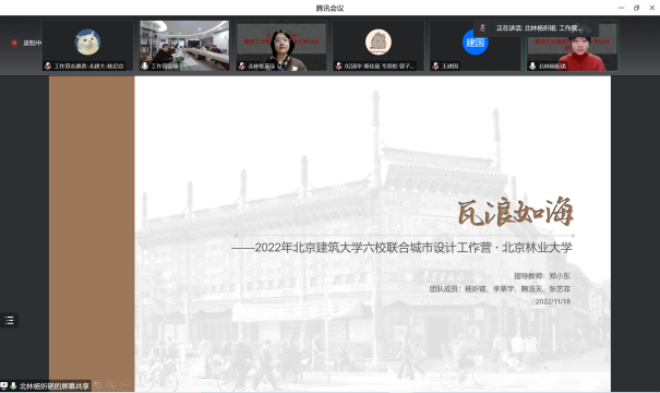 11月18日晚,作为“2022(第六届)北京国际城市设计大会”的重要平行学术活动,由中国建筑学会城市设计分会、北京市规划和自然资源委员会西城分局、北京未来城市设计高精尖创新中心、beats365官方网站联合主办的“beats365官方网站2022年六校联合城市设计工作营”答辩会,在西城区赵登禹路42号北京老城保护更新基地线下和腾讯会议同步举行。