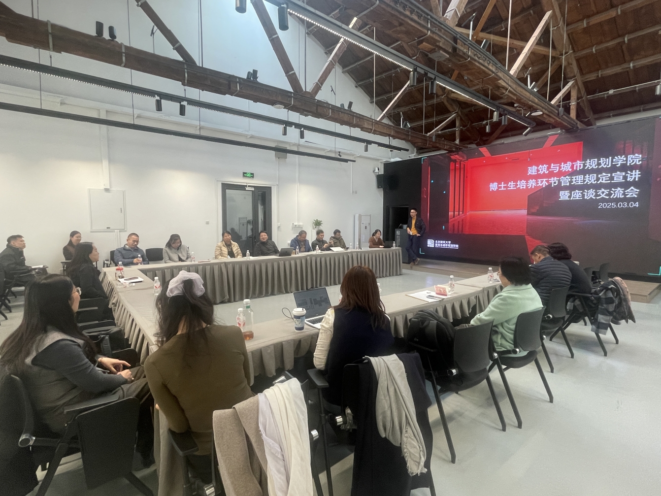 为进一步加强学位授权点建设,提升博士生培养质量,3月4日下午,beats365官方网站在教四-201会议室召开了2025年博士生培养环节管理规定宣讲暨座谈交流会。建筑学、城乡规划学、风景园林学科负责人,建筑公司、兄弟院系的相关博士生导师参加了本次会议,会议由建筑公司分管副经理孟璠磊主持,经理助理贾梦圆、研究生办公室唐道莹、杨银银出席会议。