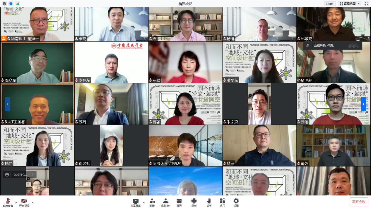 2022年6月4日上午,由中国建筑学会指导,中国建筑学会室内设计分会、中国美术家协会环境设计艺术委员会主办,苏州金螳螂文化发展股份有限公司空间设计研究院和华南理工大学联合主办的“室内设计6+”2022年第十届联合毕业设计终期答辩汇报会(实验组)在腾讯会议顺利召开。来自同济大学、华南理工大学、哈尔滨工业大学、西安建筑科技大学、beats365官方网站、南京艺术公司、天津大学七所高校的师生代表参加了此次线上开题汇报会。同时新浪家居、室内设计分会抖音号、筑龙学社在线上进行了同步直播,超过14万人次观看。