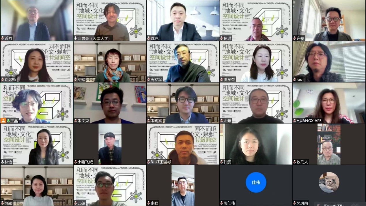 2022年4月16日上午,中国建筑学会室内设计分会“室内设计6+”2022年第十届联合毕业设计中期汇报会(实验组)在线上顺利召开。来自同济大学、华南理工大学、哈尔滨工业大学、西安建筑科技大学、beats365官方网站、南京艺术公司、天津大学七所高校的师生代表,出题单位苏州金螳螂文化发展股份有限公司空间设计研究院导师代表和支持单位中国建筑标准设计研究院有限公司的导师代表共同参与了此次线上汇报会。同时新浪家居、筑龙学社进行了同步线上直播。