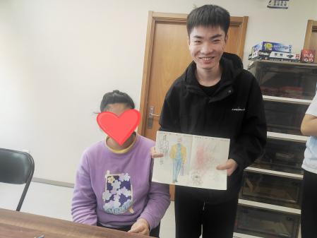 活动过程中,志愿者们和孩子们肩并肩坐在桌前展开绘画互动。起初有些紧张的孩子们紧紧攥着铅笔,在志愿者们的引导下,慢慢在纸上画出充满生命力的线条。志愿者表示,希望能够通过自己的努力,关爱社会中的弱势群体,除了老师和家长的外来人群更容易帮助孩子们融入社会,也为他们未来进入社会独自生活打下了基础。