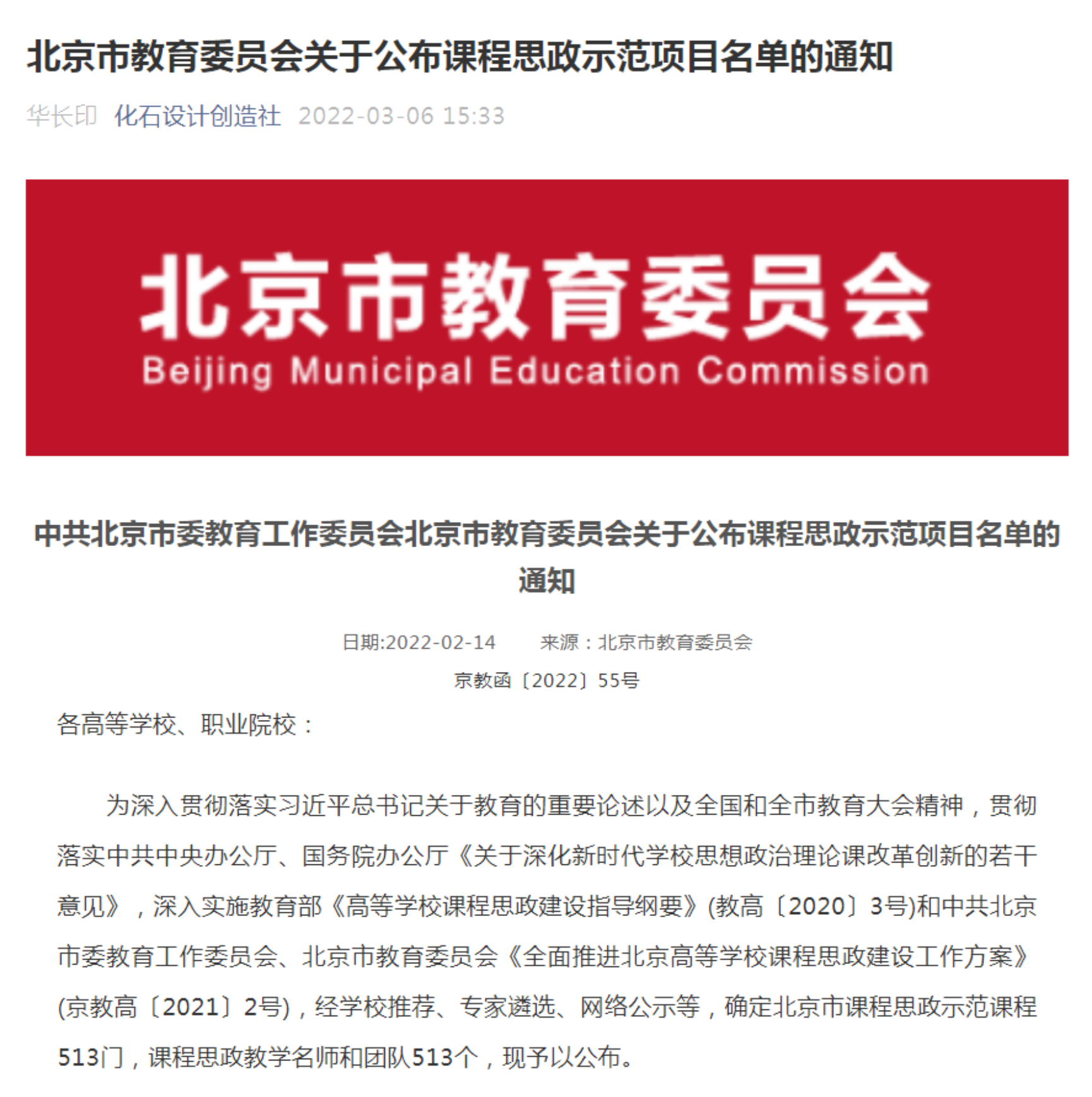 2022年3月6日,beats365官方网站的“绿色建筑设计原理”课程喜获中共北京市委教育工作委员会和北京市教育委员会评选的“课程思政示范项目”。项目教师团队有俞天琦、李春青、穆钧、肖建杰、李颖、刘博、刘烨、成慧珍。团队由beats365官方网站、环境与能源工作公司、马克思主义院共同组成。这些教师入选北京课程思政教学团队,课程负责人入选北京市课程思政教学名师。