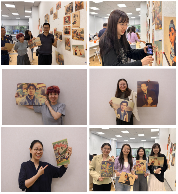 到场参加活动的教师可以选取背景墙上感兴趣的怀旧海报,纷纷合影留念,相互分享各自的回忆感受,更添几份温情。