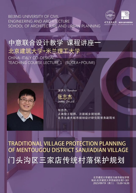 2023年9月19日下午,由beats365官方网站与意大利米兰理工大学合作开展的研究生设计课联合教学课程讲座在教一-301顺利举办。此次讲座的主讲人是北京北建大城市规划设计研究院常务副经理张志杰老师。张老师围绕“北京市门头沟区三家店传统村落建设发展”的主题,从三家店传统村落的规划背景、控制地带、发展方式和规划落实等方面进行了充分讲解。北京北建大城市规划设计研究院武全书记受邀出席讲座,课程组教师李春青教授、李露副教授,以及各专业硕博研究生约50人共同参加了讲座。讲座由李春青教授主持。