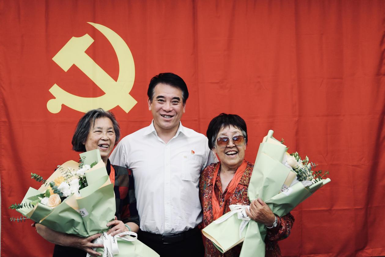 老党员徐淑常、业祖润、梁延峰表达了对党的感恩和深深的眷恋之情,90岁高龄的老党员徐淑常说到自己经历时几度哽咽,“是党给了我第二次生命,没有党就没有我,永远跟党走是我这辈子最正确的选择。”