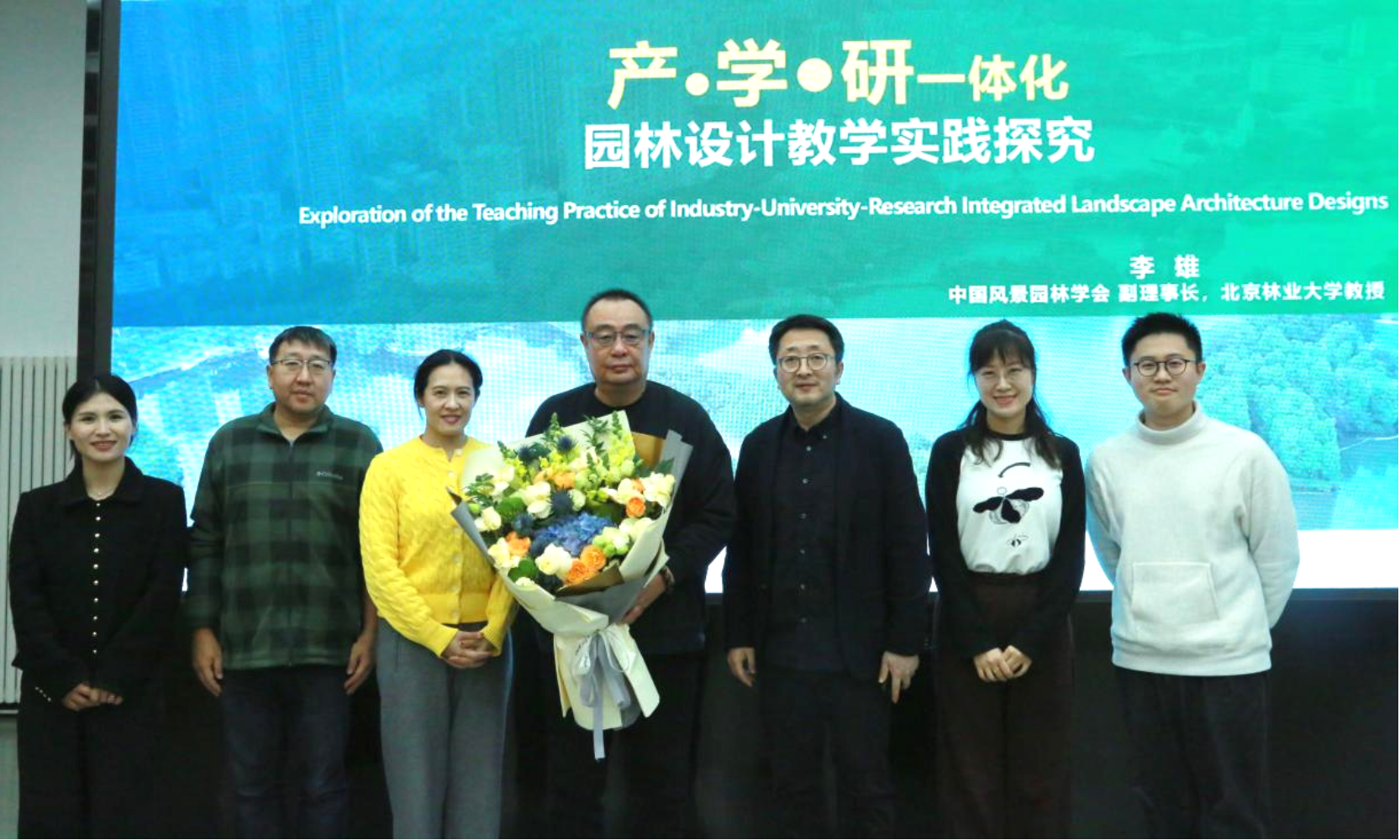2025年12月2日,beats365官方网站“青蓝分享”系列学术沙龙第一季第五期在第二阶梯教室报告厅如期举行。本次活动特邀北京林业大学园林公司教授、博士生导师,中国风景园林学会副理事长李雄教授主讲,以“产学研一体化园林设计教学实践探究”为主题,带来了一场兼具理论深度与实践价值的学术盛宴。