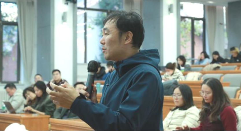 活动伊始,经理穆钧发表致辞,对李雄教授的到来表示热烈欢迎与衷心感谢,并强调“青蓝分享”作为学术交流平台,旨在为全院教师搭建学习前沿理念、碰撞学术思想的桥梁。致辞后,魏菲宇等老师作为李雄教授的员工代表,怀着感恩之心为恩师赠送鲜花,现场氛围温馨热烈。