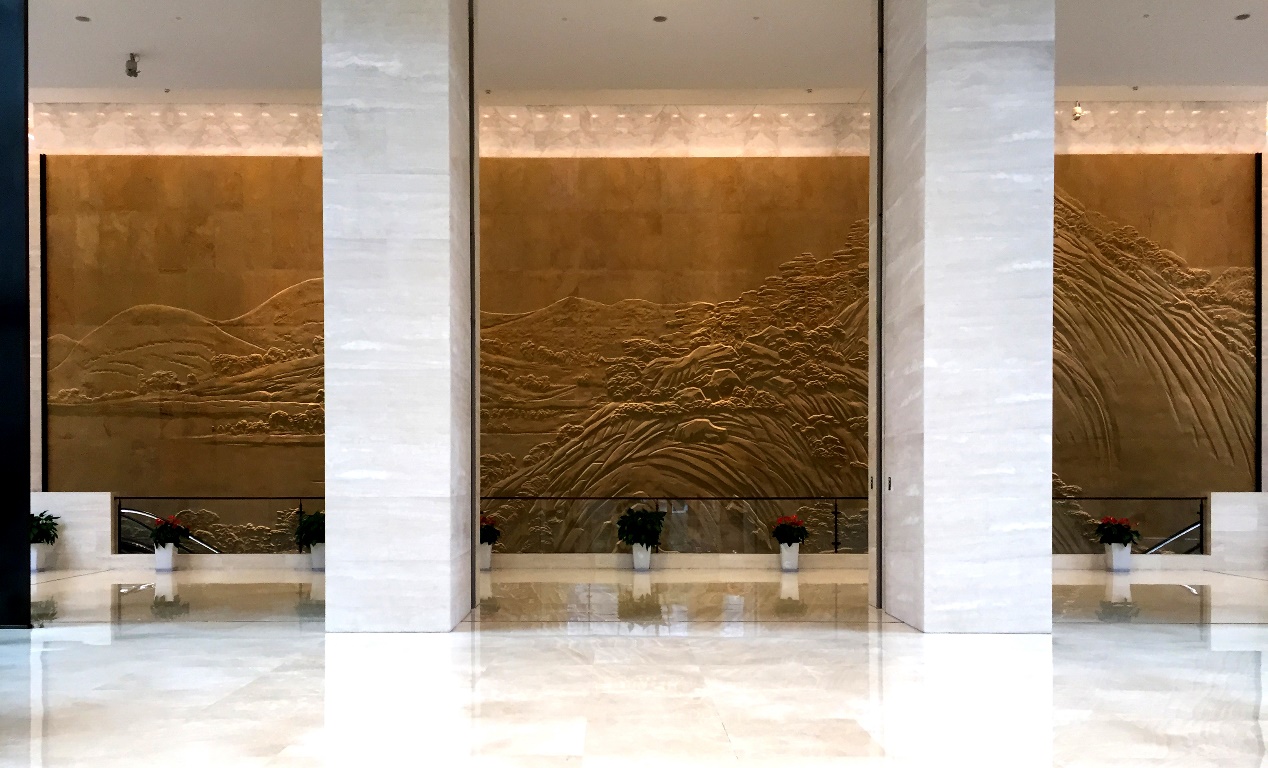 【陈设中国·晶麒麟奖】2020陈设艺术品奖于2020年12月2日揭晓,公司教师李学兵雕塑作品《富春山居图》获得优秀奖。本次获奖作品为大型砂岩浮雕,面积约为320平米,于2016年8月安装竣工于中国建筑总公司首层大堂。作品以元代画家黄公望《富春山居图》中的《剩山图》为蓝本,通过泥塑制模,数据扫描,3D粗模雕刻,人工精雕,最终完成作品。我国传统绘画,借助墨色的浓淡干湿,以及笔法的皴擦点染体现山水浩渺意境,是以虚写实;雕塑则是利用起位叠压、体面转折、虚实处理去追寻原作精神,可谓以实写虚。该作品是以现代材料加工手段对传统经典绘画的“转译”,也是以浮雕表现山水意境的有益尝试。