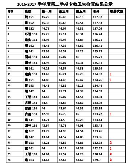 本学期考虑到同学的时间宝贵,将卫生检查改为两周一次,并出台了规定,惩罚多次不配合卫生检查的班级,奖励环境干净整洁的班级。检查的频率降低了,但是标准不会降低。不参与卫生检查的班级会在总分的基础上阶梯式累计扣分,而学期末总分最高的三个班级会得到公司的表彰。
