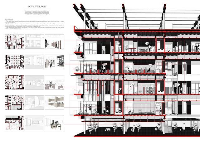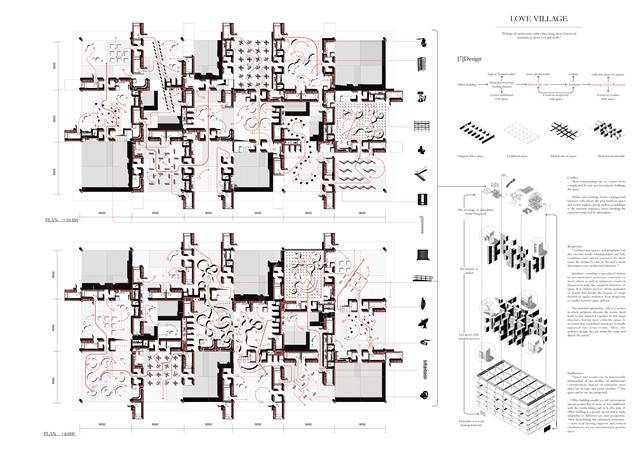 在过去的十年中,产生了大量的自由职业人,小微企业家,创客和其它新型的工作模式。社会结构的变迁带来了的是在中国一线城市中传统办公空间的衰弱。在过去十年的建设大潮中,这些城市大都兴建起大量办公建筑。而现在这些存量建筑空间为新功能的植入提供了可能。 而关于爱情及亲人间相互结合的方式却也在随时间悄然变化,异地恋人,单身父母,退休夫妇甚至是同情恋人的数量都在不断增长。 爱的力量触发了多样化的需求,而未来的爱情公寓将要满足所有这些人可能的需求。不论男性还是女性,老年人还是年轻人,同性恋人还是异性恋人,他们都对爱情有着独特的理解与相应的表达方式。因此,许多事件,运动,故事将会在这样一个爱情公寓的方案之中发酵。或者更确切地说这里将成为一个爱之聚落,是一个有着不同背景的人们共享群体生活并享受爱欲所带来的同样的快乐的空间。