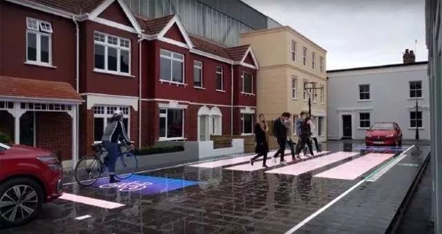 一旦有人闯红灯,智能系统会显示一条醒目的“道路”,提醒过路车辆和闯红灯的人。小朋友误闯道路或者将足球踢到道路中间,也会产生明显的提醒标志,确保行人安全,降低交通事故率。