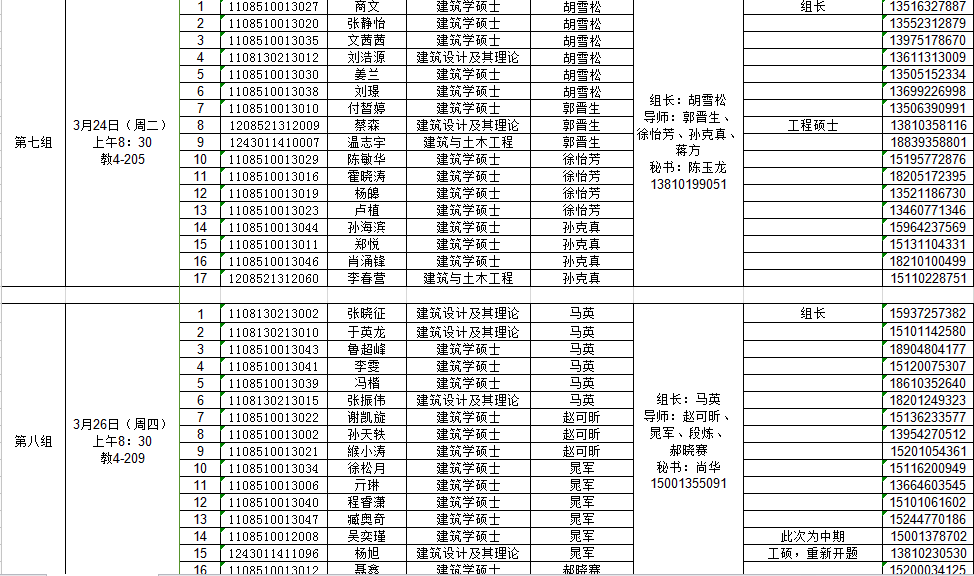 2015年春季开题分组情况表