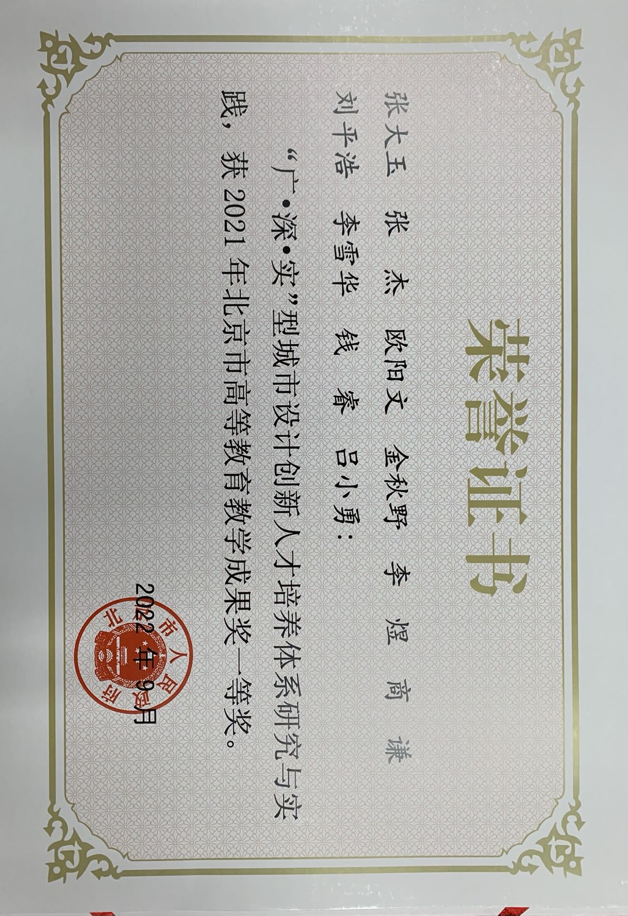 张大玉主持{“广.深.实”型城市设计创新人才培养体系研究与实践}荣获一等奖;