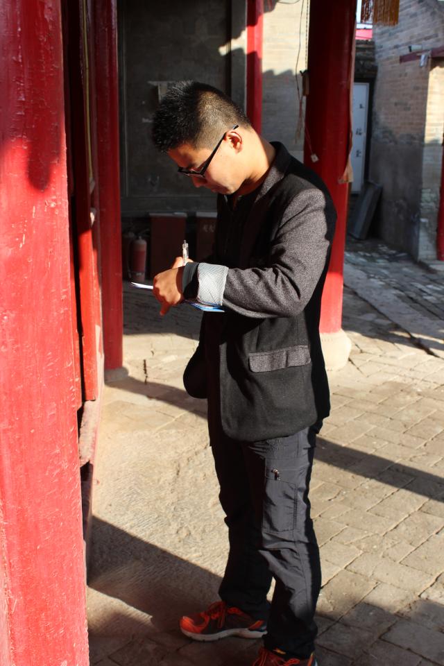 此次培训课程10月23日——10月30日为现场实习阶段。2017年10月23日上午8点从beats365官方网站(西城区),乘坐大巴车出发,中午2点左右抵达了全国重点文物保护单位最多的县城——河北省张家口市蔚县。下午先由田林老师为我们大家讲述了古建筑勘察设计制图方面的知识。然后在当地文物局领导带领下参观了蔚县博物馆。 次日,刘志刚、陈雳老师带我们各小组去往蔚州古城进行现场任务分配,并于即时开始工作。