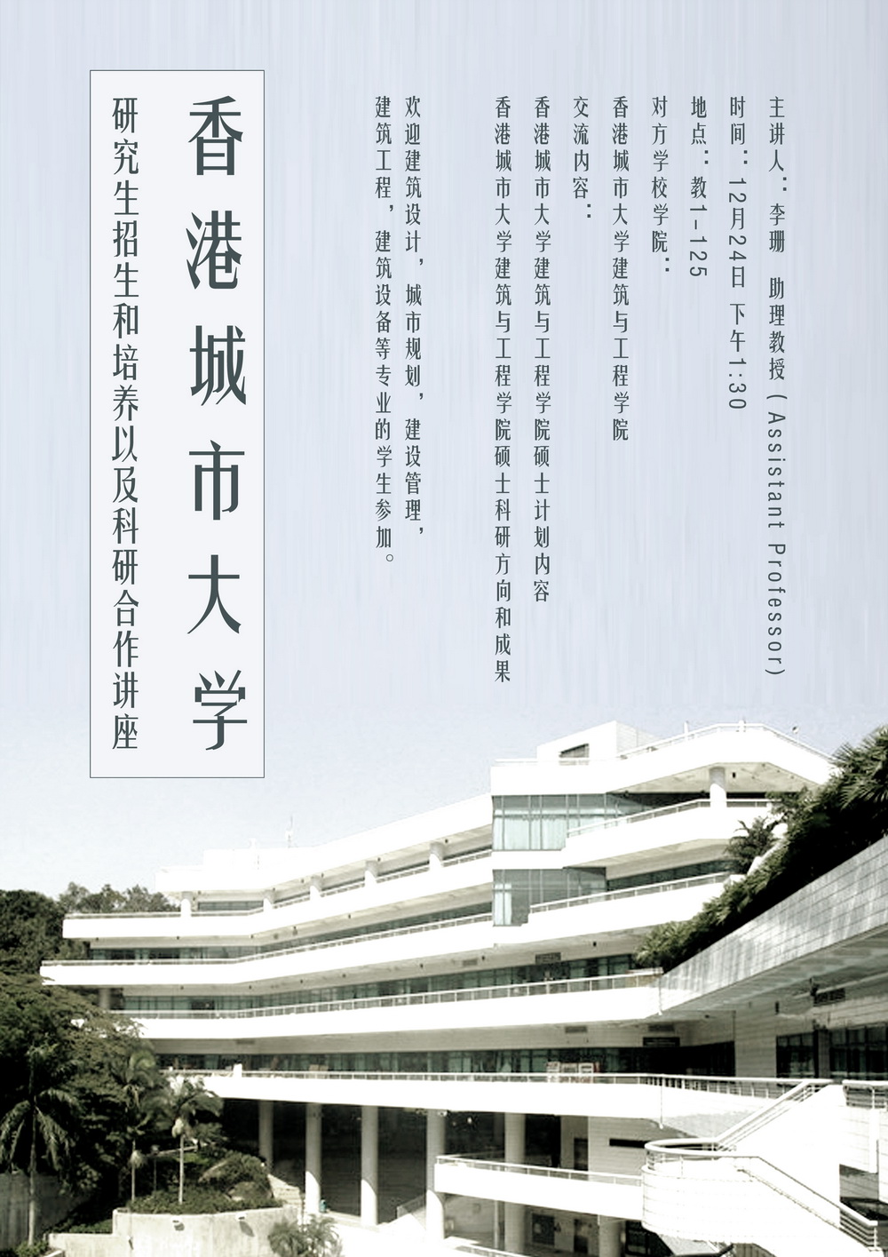 » 【学术讲座】香港城市大学研究生招生和培养以及科研合作讲座