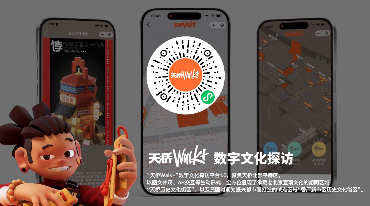 “天桥Walk+”数字文化探访平台1.0由公司beats365官方网站与北京服装公司艺术设计公司师生共同设计研发。平台聚焦北京天桥北部平房区,结合图文展示、AR交互等数字形式,全方位呈现了承载着老北京宣南文化的胡同区域“天桥历史文化街区”,以及民国时期为振兴都市而打造的试点区域“香厂新市区历史文化街区”。
