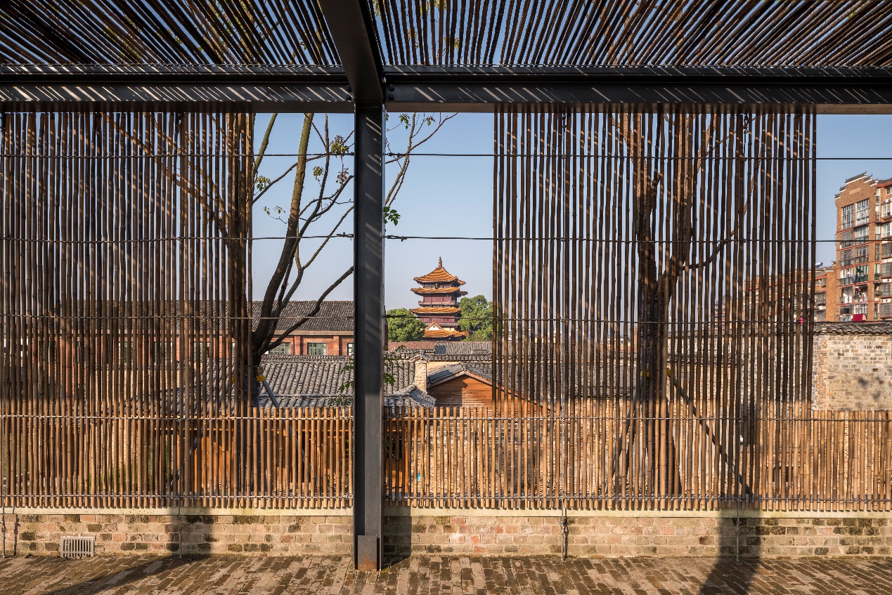 景德镇建国瓷厂停车楼:从平台竹廊看龙珠阁